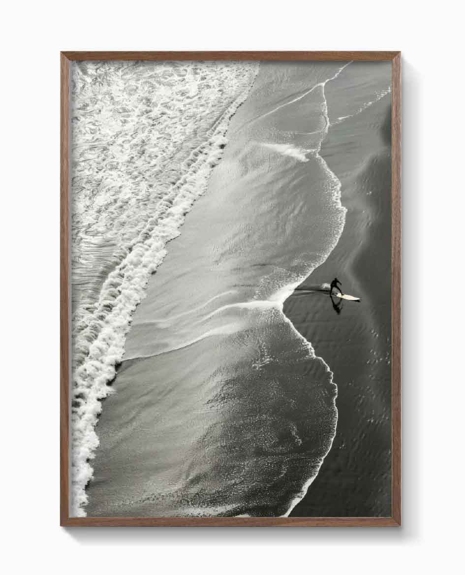 Utilizamos marcos de madera solida cortados con precisión por maquina para la creación de nuestros marcos. Actualmente están disponibles en diferentes acabados de madera, como negro, blanco y madera clara. Además, los marcos tienen caimanes de metal para colgarlos fácilmente.